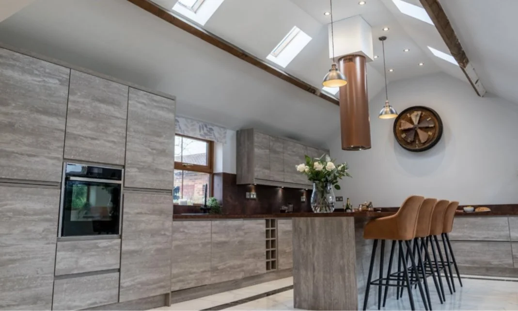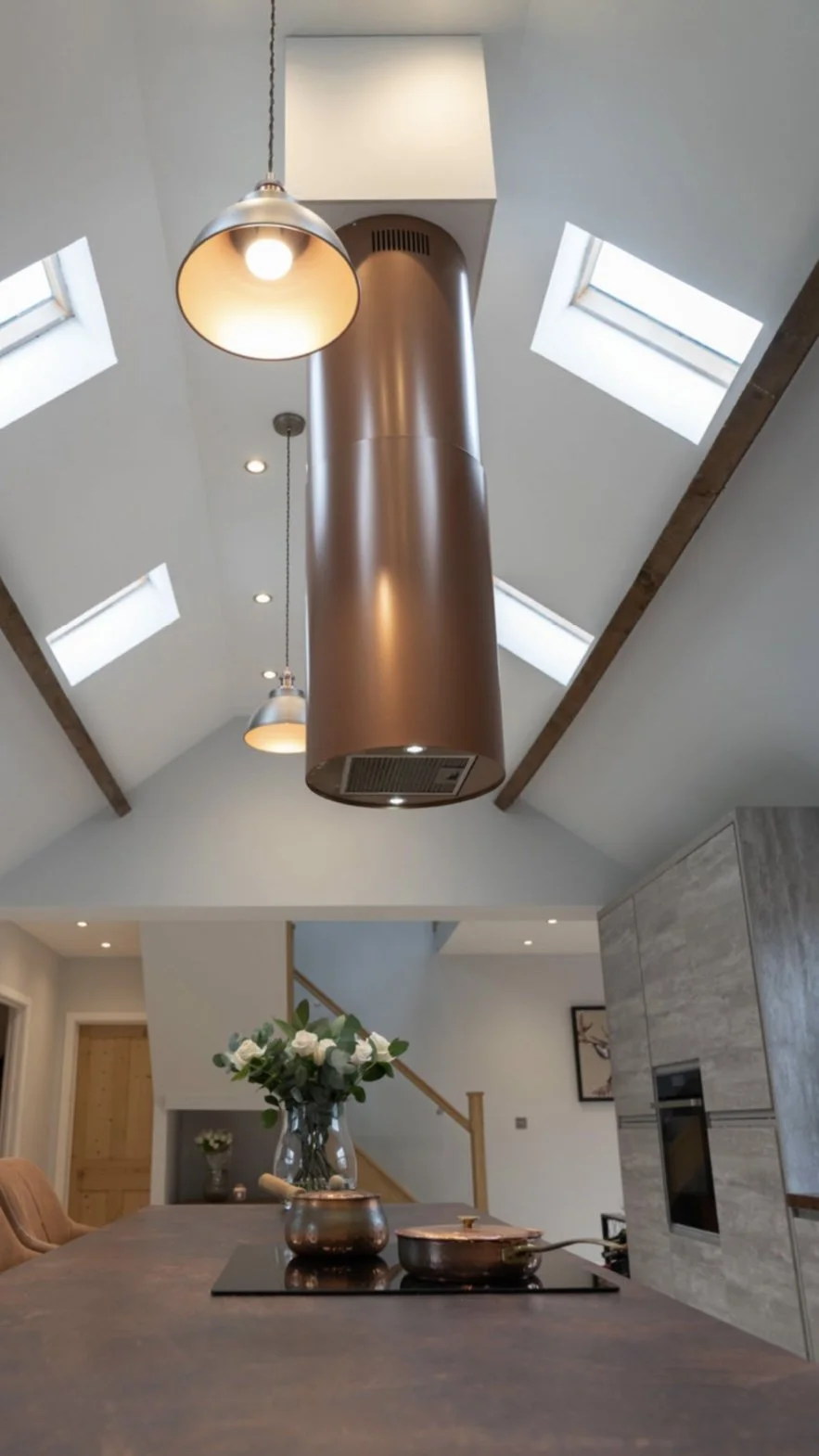 For the kitchen, we vaulted the existing roof and added six rooflights to saturate the space with natural light.
